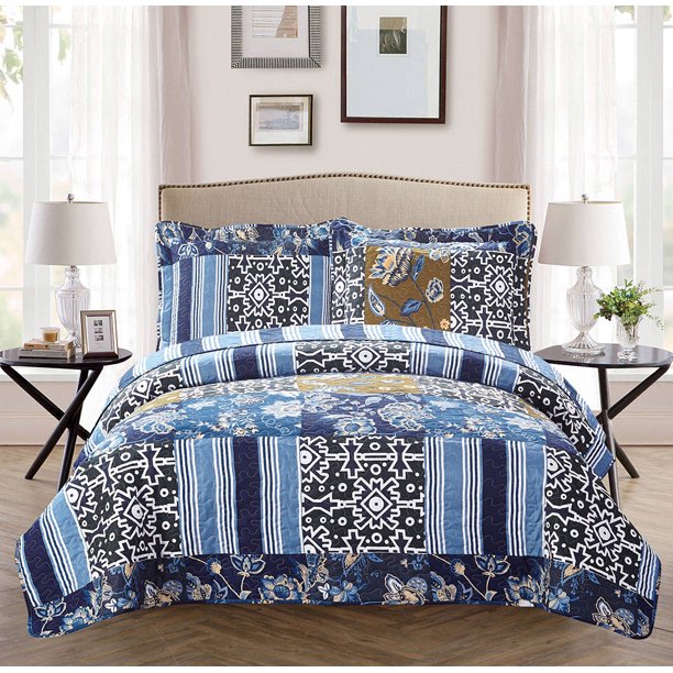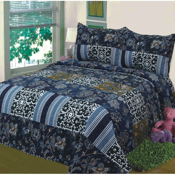 Navy Blue Bedspread King : For oversized bedspreads, specify grande twin, grande full, grande queen, grande king, or grande cal king.. Flanged sham mimics the bedspread face and has a french back. Increase the comfort of your king bedding essentials with an extra long and extra wide king comforter from byourbed. Vivilinen quilted bedspread set 3 pieces reversible patchwork coverlets soft brushed microfiber double king quilt with 2 pillow shams (navy, king (220x240cm)) 4.2 out of 5 stars 67 £36.99 £ 36. Coverlets are typically only designed to cover the top of the mattress. 118" x 122" 100% cotton;